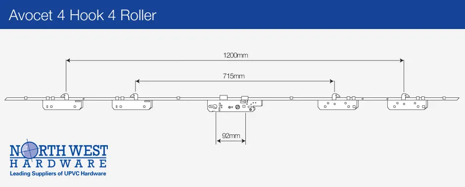 This part is now obsolete, and you can replace it with either the Avocet 2 Hook 4 Roller, or Avocet Style 3PLACEIT 2 Deadbolt.