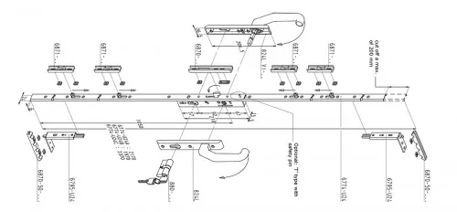 This Sobinco Patio Door Lock has 1 pivoting night hook and 4 mushroom locking points.